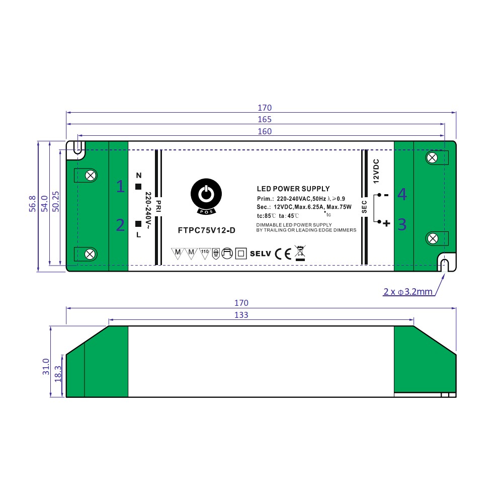 LED Power Supply 75W 12V Dimmable