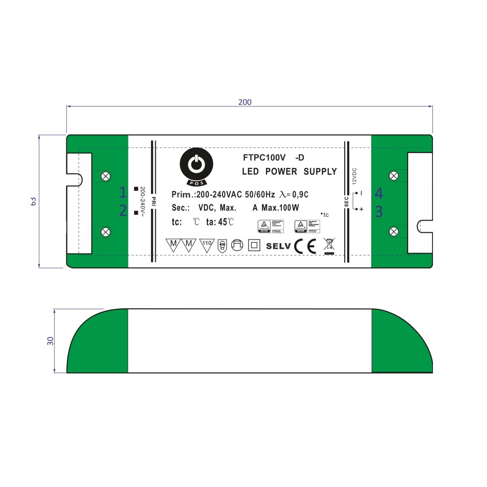 LED drivdon 100W 24V dimbar