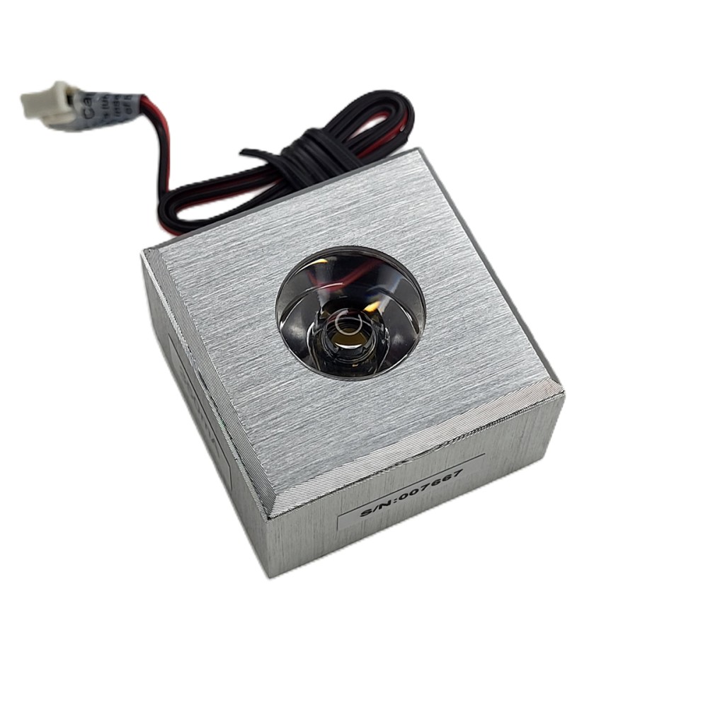 LED med mycket behagligt varmvitt ljus som endast drar 1W. Lämplig för infällt eller utanpåliggande montage i skåp, hyllor och köksbänkar mm. Distansring medföljer samt 0,3m kabel med snabbkoppling.